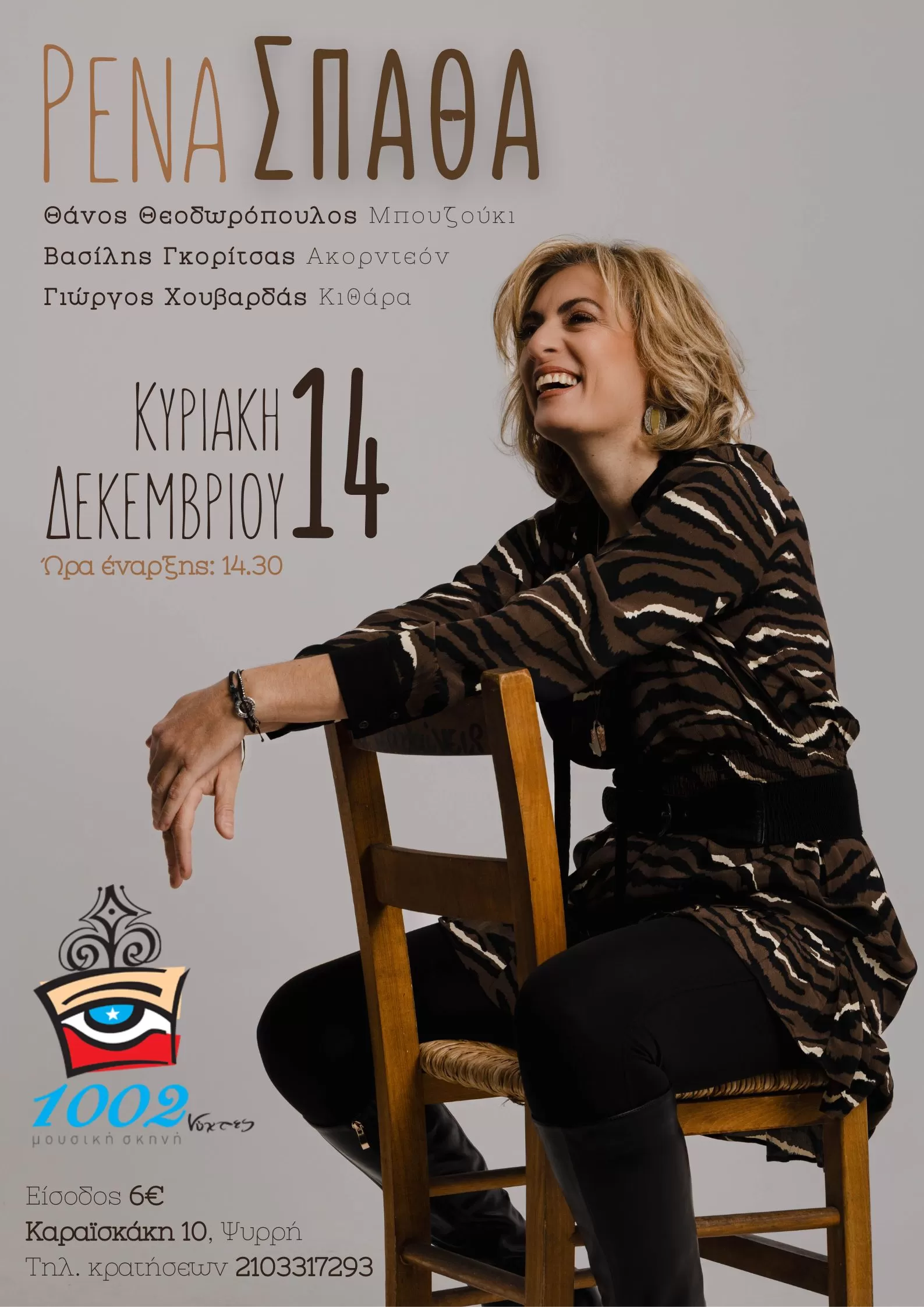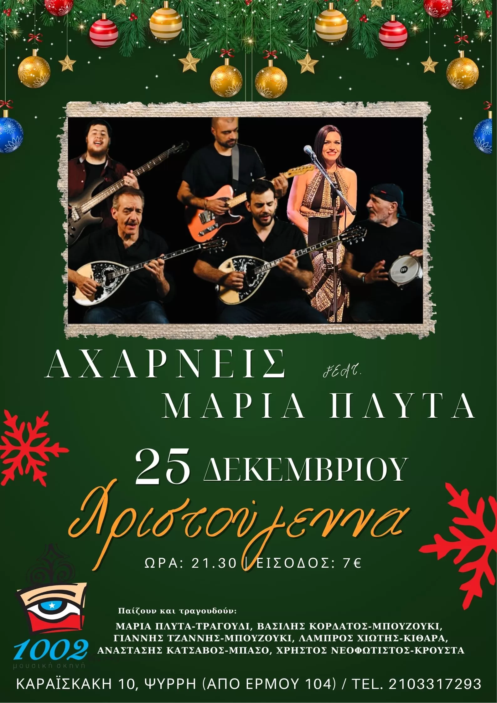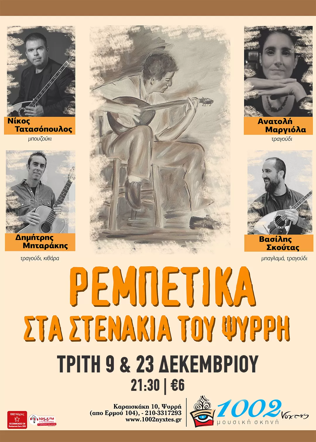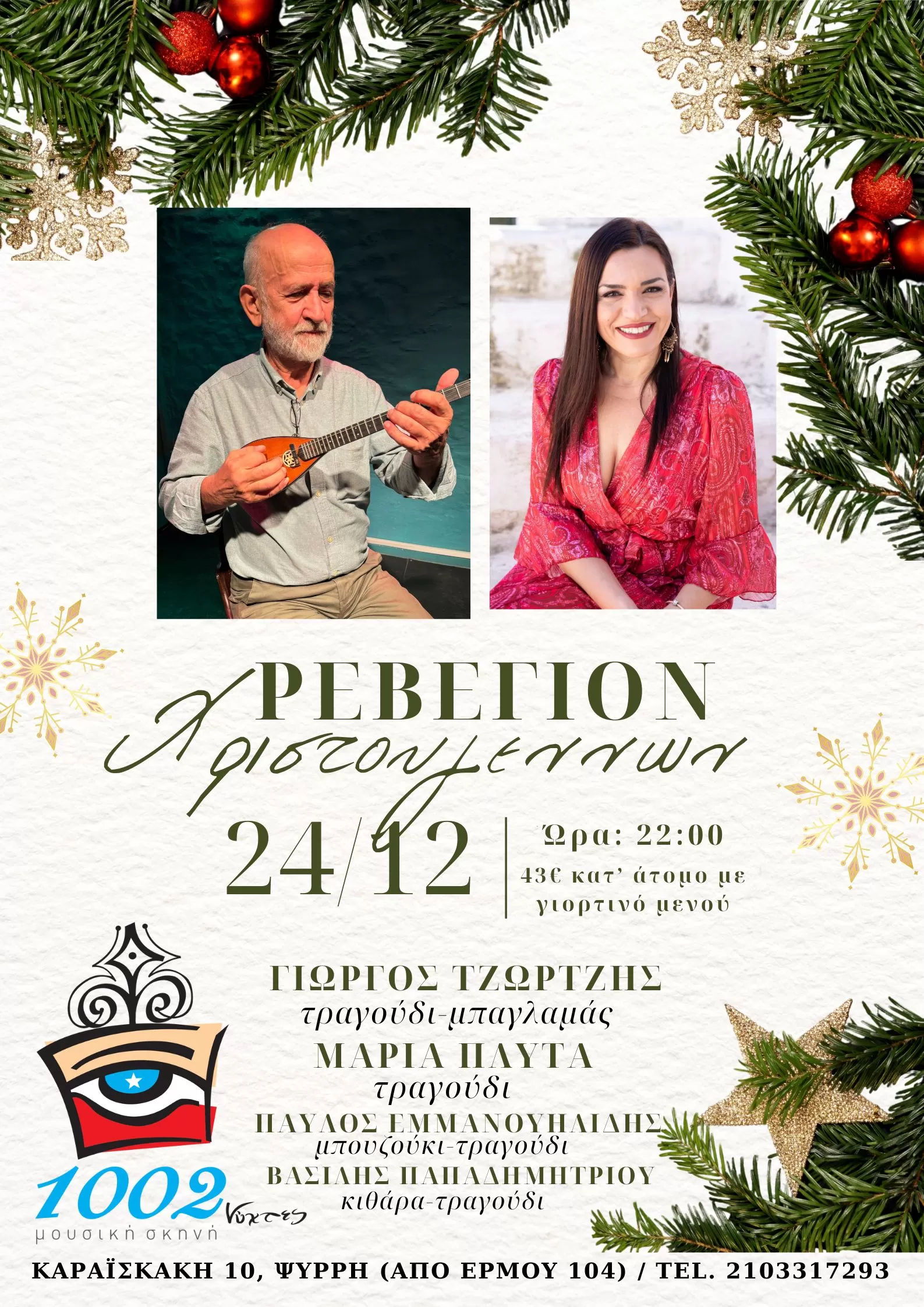 Σε λαϊκορεμπέτικες νότες ένα ιδιαίτερο «καθ’ ημάς» εορταστικό πρόγραμμα για το Ρεβεγιόν Χριστουγέννων, την Τετάρτη 24 Δεκεμβρίου στις 1002 Νύχτες.