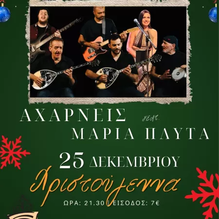 Ανήμερα Χριστουγέννων Μουσική Σκηνή 1002 Νύχτες, φιλοξενεί τους Αχαρνείς που, σε σύμπραξη με την ερμηνεύτρια Μαρία Πλυτά θα μας ταξιδέψουν σε ένα «Λαϊκό Καραβάνι» χαράς και κεφιού παρουσιάζοντας μια σειρά μουσικών επιτυχιών του ελληνικού λαϊκού πάλκου.