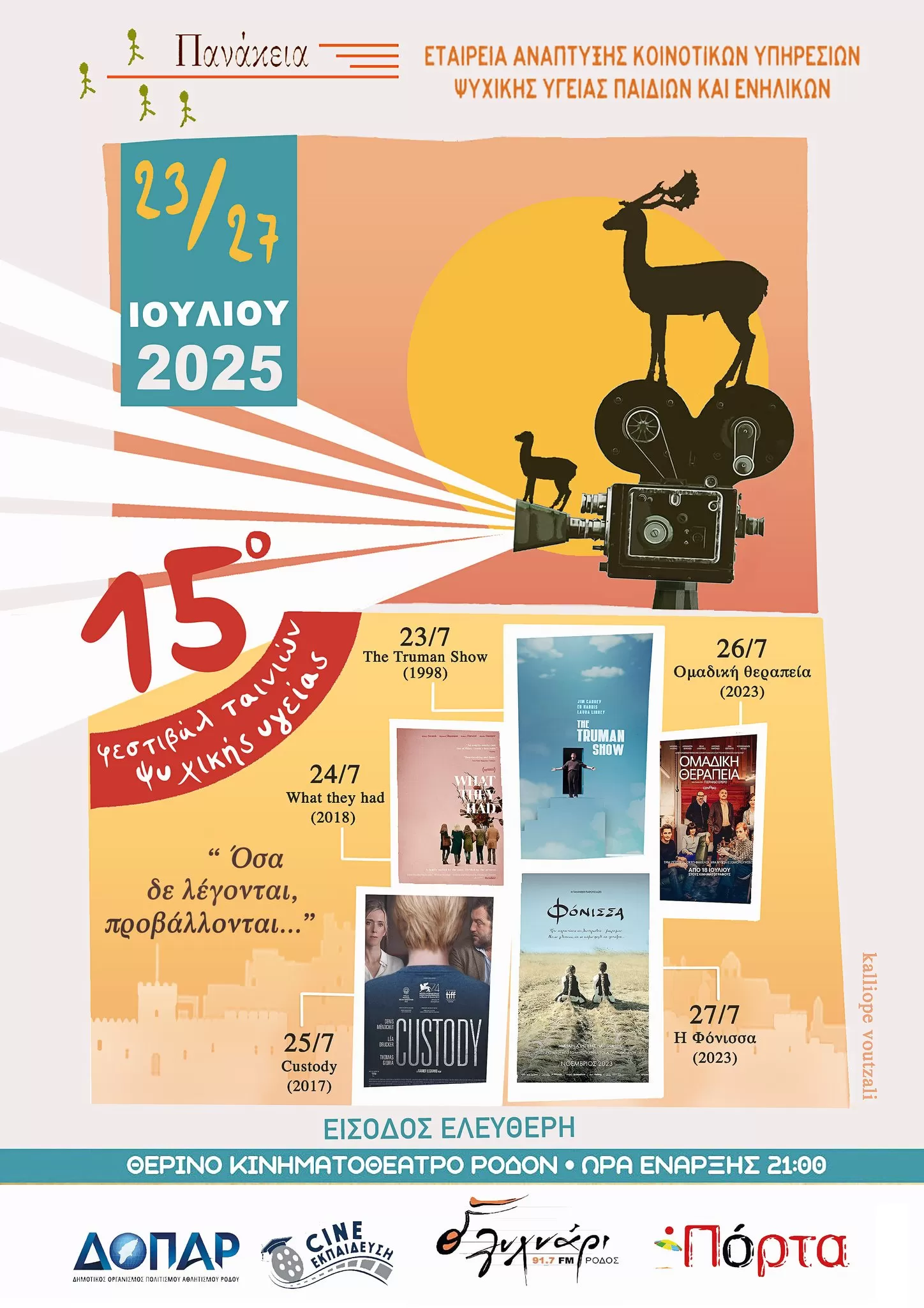 15ο Φεστιβάλ Ταινιών Ψυχικής Υγείας της "Πανάκεια" | Θερινό κινηματοθέατρο ΡΟΔΟΝ | 23-27 Ιουλίου
