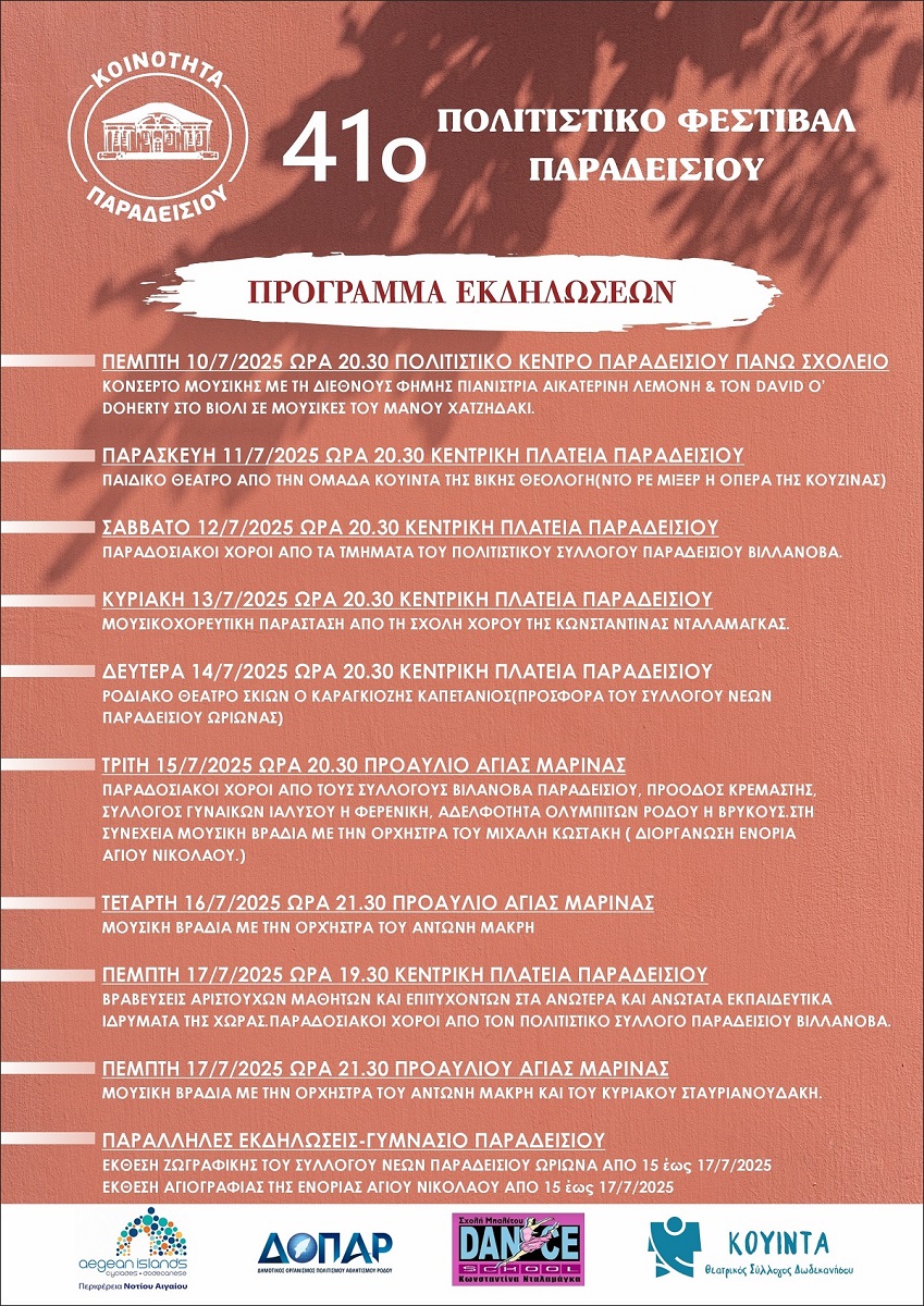 ΠΡΟΓΡΑΜΜΑ ΕΚΔΗΛΩΣΕΩΝ 41ου ΠΟΛΙΤΙΣΤΙΚΟΥ ΦΕΣΤΙΒΑΛ ΠΑΡΑΔΕΙΣΙΟΥ