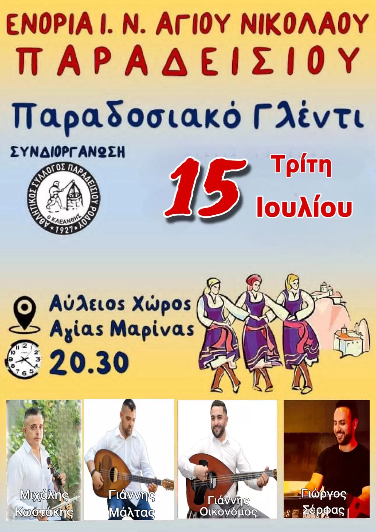 ΤΡΙΤΗ 15/7/2025 ΩΡΑ 20.30 ΠΡΟΑΥΛΙΟ ΑΓΙΑΣ ΜΑΡΙΝΑΣ