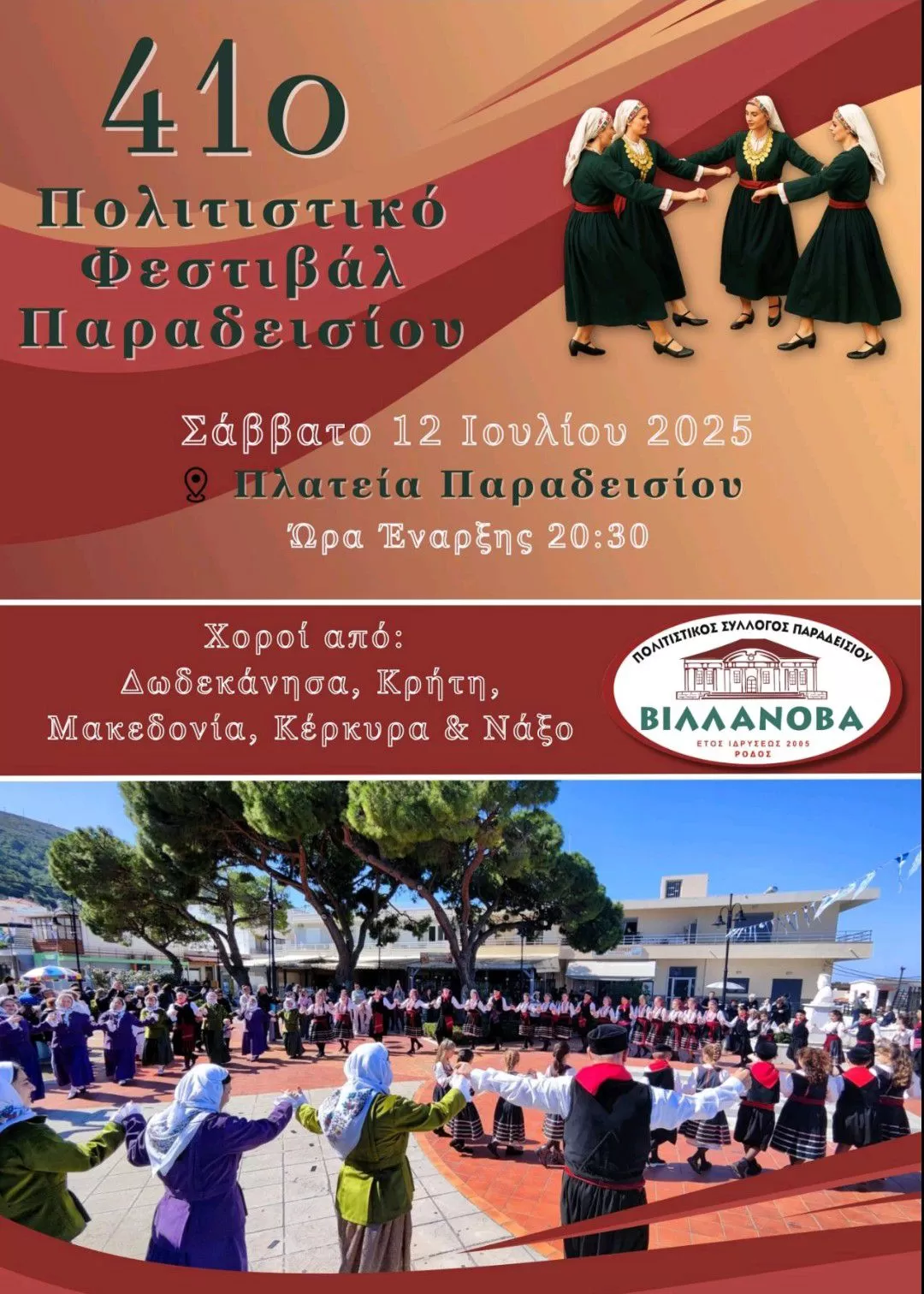 ΠΑΡΑΔΟΣΙΑΚΟΙ ΧΟΡΟΙ ΑΠΟ ΤΑ ΤΜΗΜΑΤΑ ΤΟΥ ΠΟΛΙΤΙΣΤΙΚΟΥ ΣΥΛΛΟΓΟΥ ΠΑΡΑΔΕΙΣΙΟΥ ΒΙΛΛΑΝΟΒΑ.
