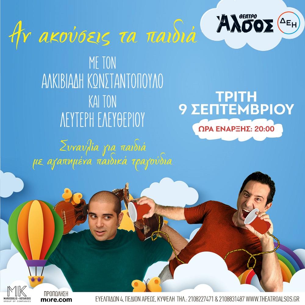 "ΑΝ ΑΚΟΥΣΕΙΣ ΤΑ ΠΑΙΔΙΑ" | ΜΕ ΤΟΥΣ ΛΕΥΤΕΡΗ ΕΛΕΥΘΕΡΙΟΥ ΚΑΙ ΑΛΚΙΒΙΑΔΗ ΚΩΝΣΤΑΝΤΟΠΟΥΛΟ | ΘΕΑΤΡΟ ΑΛΣΟΣ ΔΕΗ | 9 Σεπτεμβρίου