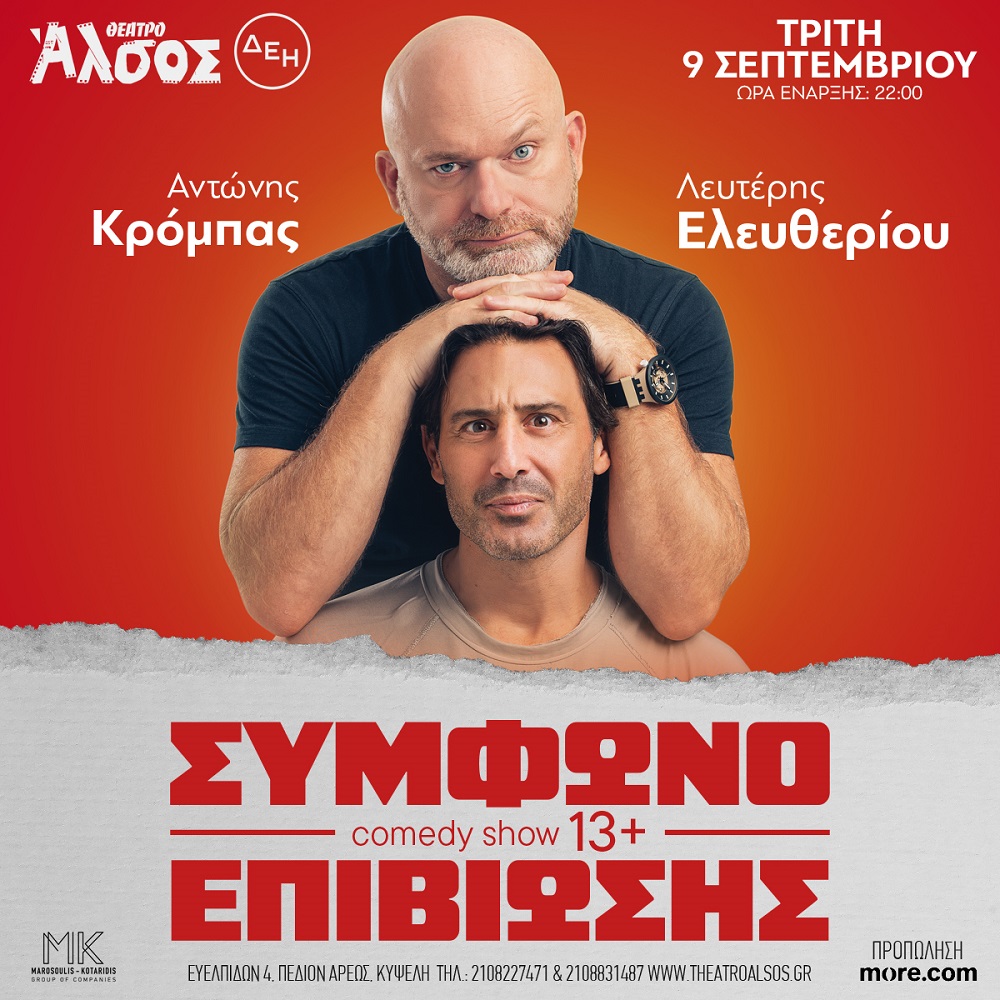 ΑΝΤΩΝΗΣ ΚΡΟΜΠΑΣ – ΛΕΥΤΕΡΗΣ ΕΛΕΥΘΕΡΙΟΥ «Σύμφωνο επιβίωσης» | ΘΕΑΤΡΟ ΑΛΣΟΣ ΔΕΗ | 6 Σεπτεμβρίου