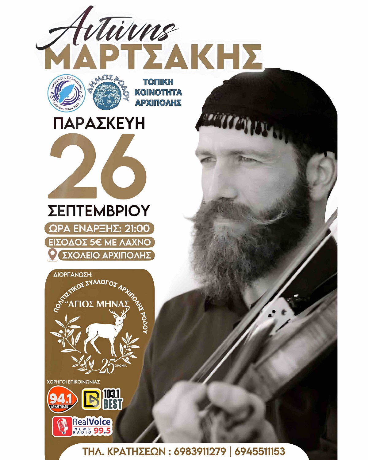 Παρασκευή 26 Σεπτεμβρίου και ωρα 21:00, στον προαύλιο χώρο του Δημοτικού Σχολείου Αρχίπολης!