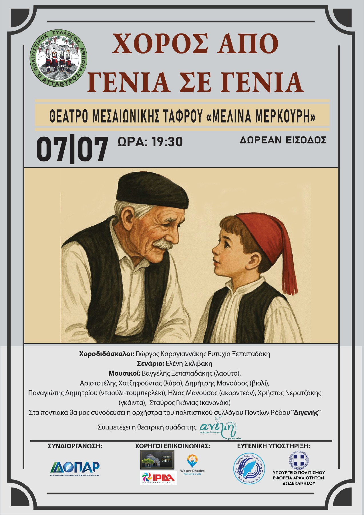 Ένα ταξίδι στο χρόνο μέσα από τη μουσική και τον χορό, όπου η παράδοση μεταδίδεται από τους παππούδες στα εγγόνια – με σεβασμό, συγκίνηση και αγάπη για τις ρίζες μας.