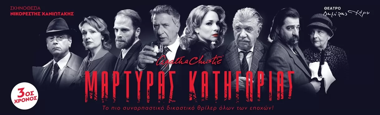 Το πολυβραβευμένο δικαστικό αριστούργημα της Άγκαθα Κρίστι, ένα από τα πιο συναρπαστικά θρίλερ όλων των εποχών, επιστρέφει για τρίτη χρονιά στο Θέατρο ΧΟΡΝ, σε σκηνοθεσία Νικορέστη Χανιωτάκη.