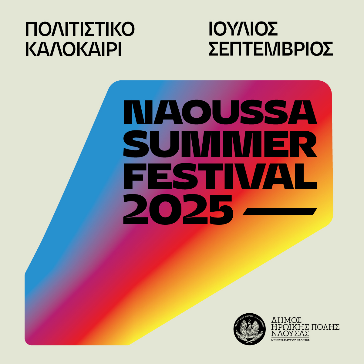 Ο Δήμος Η.Π. Νάουσας σάς προσκαλεί στο Naoussa Summer Festival 2025, έναν θεσμό που γεμίζει την πόλη με πολιτισμό, τέχνη και διασκέδαση από τις 9 Ιουλίου έως και τα μέσα Σεπτεμβρίου! Δείτε το πρόγραμμα και ελάτε να ζήσουμε μαζί αξέχαστες καλοκαιρινές βραδιές!