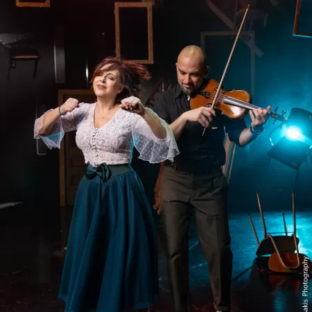 Eπι σκηνής η αέρινη Μιρέλα Πάχου τραγουδά , παίζει ακορντεόν και όχι μόνο . Στο βιολί ο Αλέξανδρου Ιακώβου.