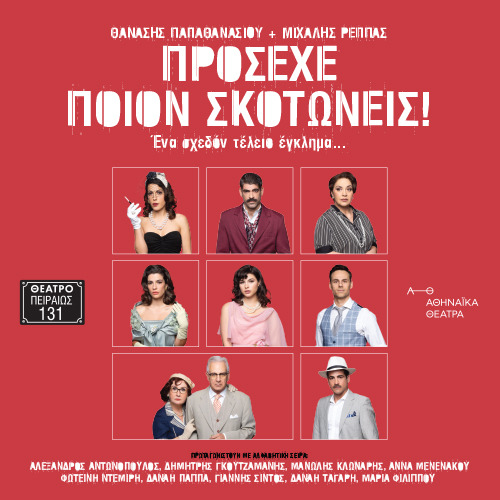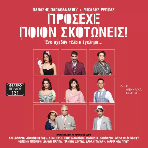 Το νέο έργο των Θανάση Παπαθανασίου και Μιχάλη Ρέππα «Πρόσεχε ποιον σκοτώνεις!», μία σπιρτόζικη ιστορία φόνων, γεμάτη από ίντριγκες, ανατροπές και το κομψό χιούμορ που ταιριάζει στο αστικό κλίμα της δεκαετίας του 1950, διαδραματίζεται σ΄ ένα νησί του Αργοσαρωνικού στις αρχές της δεκαετίας του ’50 και παρουσιάζεται στη μόνιμη θεατρική στέγη του πολυγραφότατου συγγραφικού διδύμου, το θέατρο Πειραιώς 131, τη σεζόν 2025-2026.