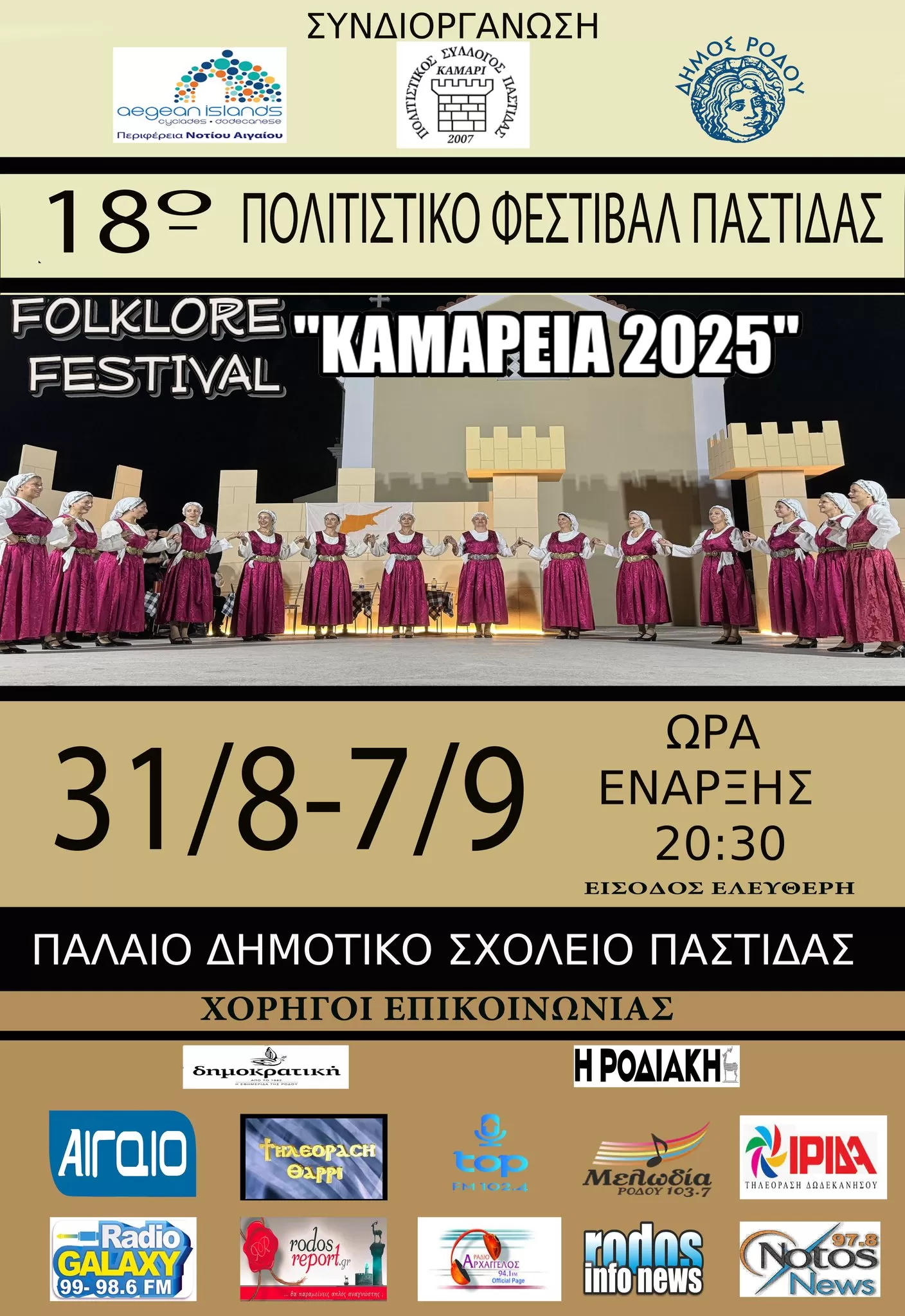 «Πρόγραμμα 18ου Πολιτιστικού Φεστιβάλ Παστίδας “Καμάρεια 2025” που συνδιοργανώνει ο Πολιτιστικός Σύλλογος Παστίδας «Καμάρι» με την Περιφέρεια Νοτίου Αιγαίου και τον Δήμο Ρόδου»
