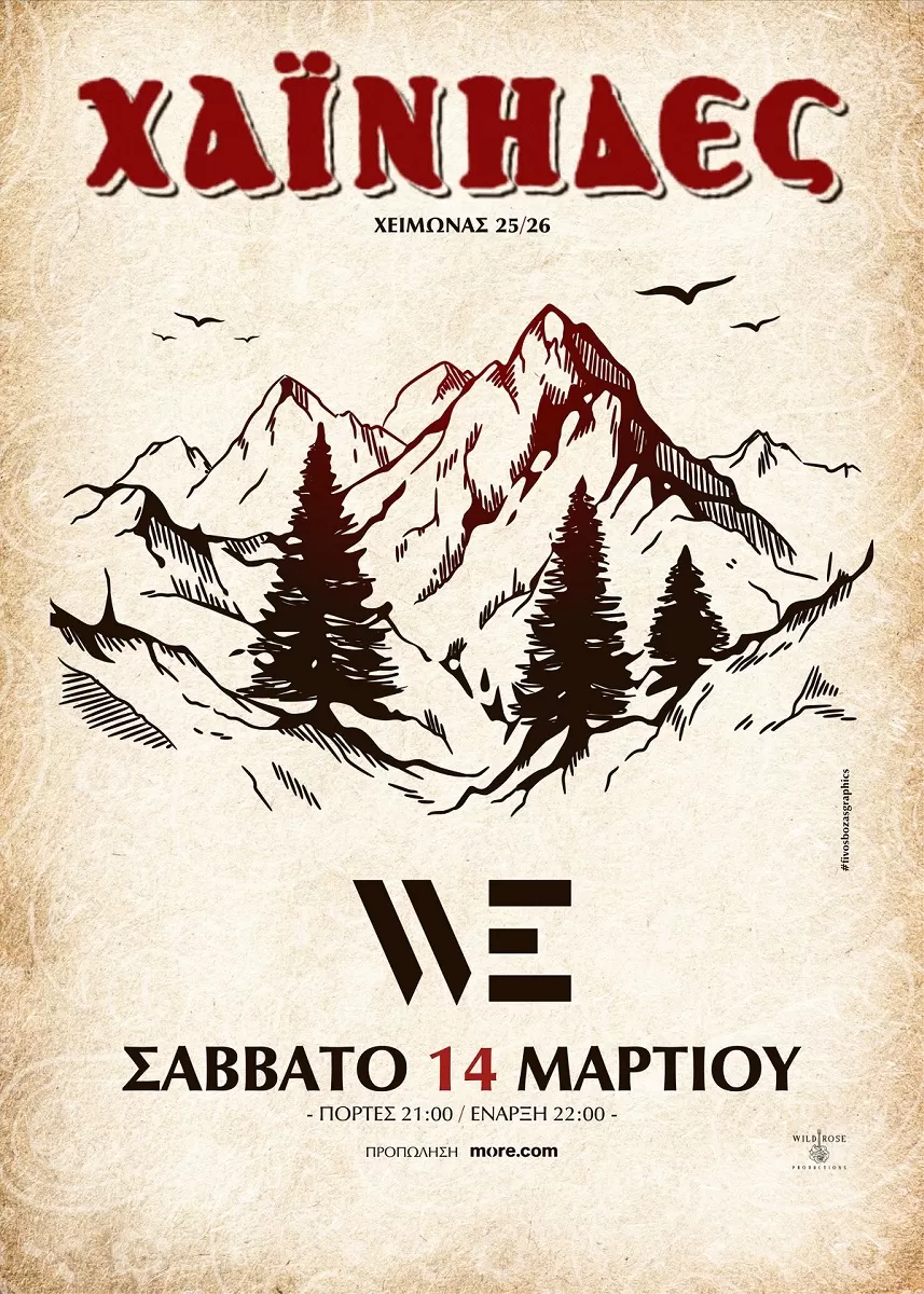 Οι Χαΐνηδες επιστρέφουν στον Πολυχώρο WΕ το Σάββατο 14 Μαρτίου για μια μοναδική συναυλία! Οι Χαΐνηδες - όπως πάντα- έρχονται για να μας μαγέψουν και να μας πάρουν μαζί τους σε ένα μουσικό ταξίδι που συνδυάζει την κρητική παράδοση με το ροκ, την τζαζ και τα βαλκανικά μοτίβα.