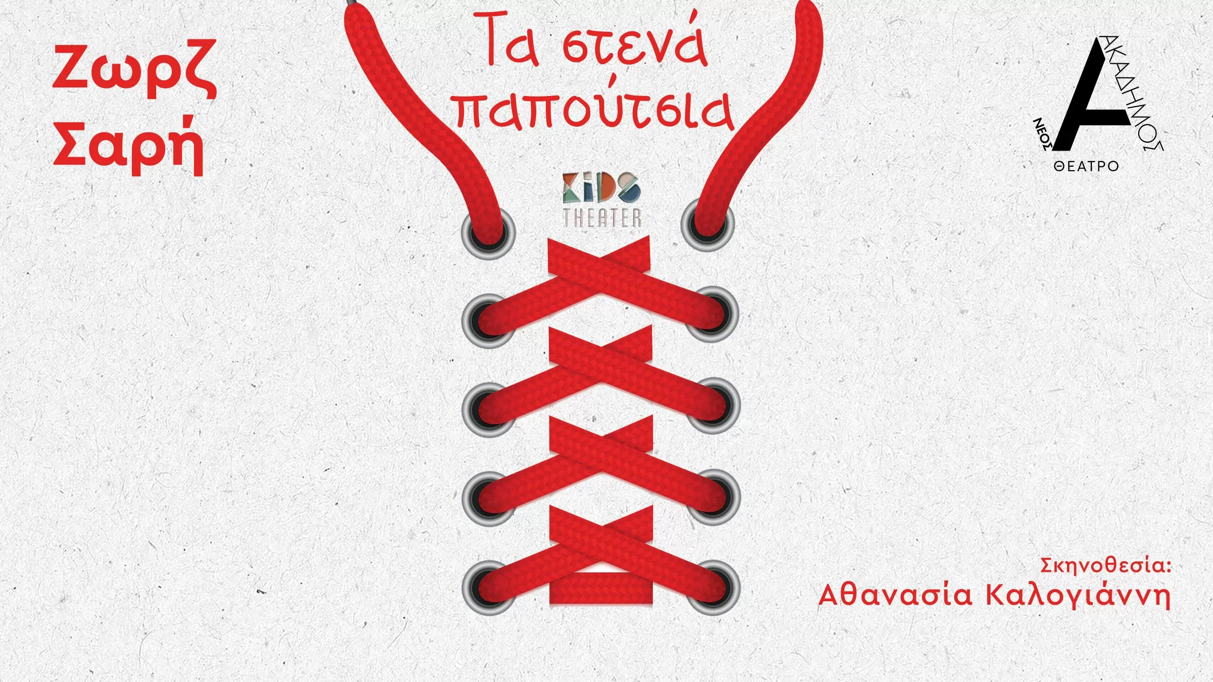 Το έργο «Τα Στενά Παπούτσια» της Ζωρζ Σαρή ανεβαίνει στο θέατρο Νέος Ακάδημος σε σκηνοθεσία Αθανασίας Καλογιάννη. Μια παράσταση με συγκίνηση και χιούμορ για την αθωότητα και τις ανησυχίες των παιδιών, καθώς βαδίζουν προς την εφηβεία.