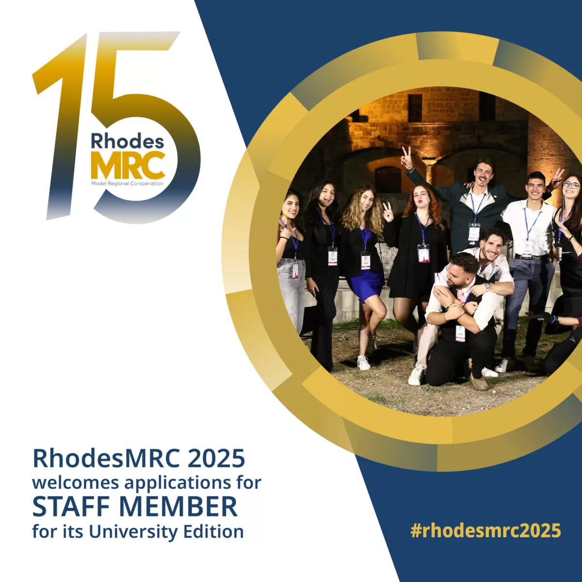 Το Rhodes Model Regional Co-operation (RhodesMRC), η μεγαλύτερη προσομοίωση διεθνών οργανισμών στη Νοτιοανατολική Μεσόγειο, επιστρέφει για 15η χρονιά, από τις 8 έως τις 12 Οκτωβρίου 2025 στη Ρόδο. Με αφορμή την επετειακή διοργάνωση, άνοιξαν οι αιτήσεις για την Ομάδα Υποστήριξης (Staff).